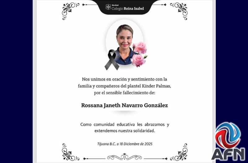 TIJUANA BC 19 DE DICIEMBRE 2025 (AFN).- "Miss Rossana" se ha ido, y sus alumnos de preescolar y compañeros la extrañan y recuerdan con cariño.