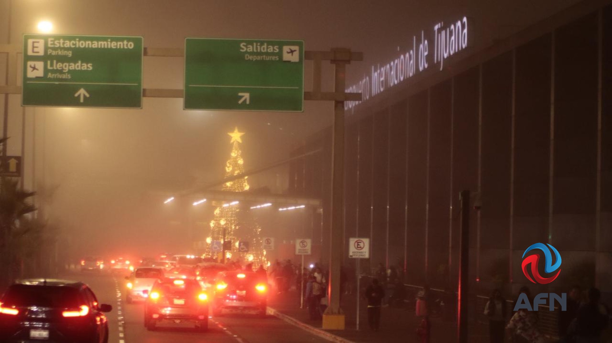 TIJUANA BC 19 DE DICIEMBRE DE 2025 (AFN).- Un banco de niebla en las inmediaciones del Aeropuerto Internacional de Tijuana ha provocado —nuevamente— retrasos en los vuelos programados para arribar y salir de la ciudad la noche de este viernes.