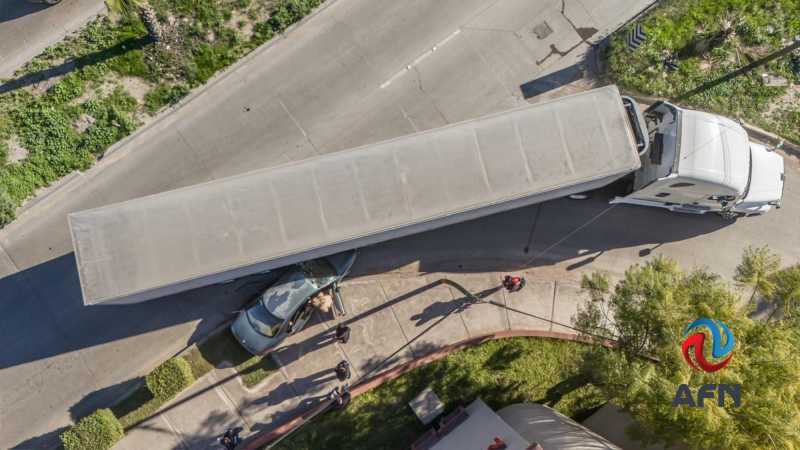 TIJUANA BC 11 DE ENERO DE 2026 (AFN).- Una pareja resultó ilesa luego de verse involucrada en un choque entre un tráiler y un automóvil compacto registrado la mañana de este domingo sobre la Vía Rápida Poniente, a la altura de la lateral para incorporarse a la calle Anáhuac, en dirección al bulevar Federico Benítez.