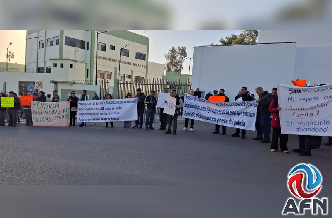 TIJUANA BC 30 DE ENERO DE 2026 (AFN).- Al menos un centenar de ciudadanos, incluidos policías activos y retirados, viudas y familiares de oficiales fallecidos, se manifestaron este martes a las afueras del Cuartel Militar Morelos, en la ciudad de Tijuana, donde la presidenta Claudia Sheinbaum Pardo encabezó la “Mañanera del Pueblo”, acompañada por la gobernadora de Baja California, Marina del Pilar Ávila Olmeda.