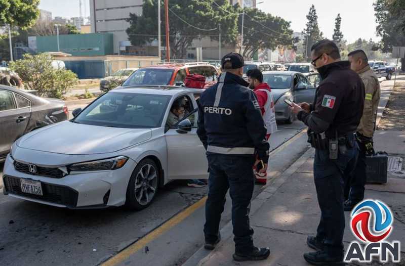 TIJUANA BC 14 DE FEBRERO DE 2026 (AFN).- La mañana de este sábado se registró un choque vehicular tipo carambola, en el que se vieron involucrados tres automóviles, en los carriles Ready Lane de la Vía Rápida Oriente, a la altura del Hospital General.