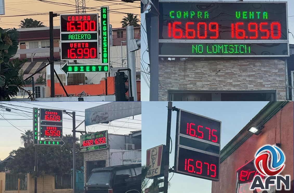 TIJUANA BC 21 DE FEBRERO DE 2026 (AFN).- El precio del dólar la mañana de este sábado en casas de cambio de Tijuana fue de 16.95 pesos, en promedio, ligeramente más alto que el viernes, cuando inició en 16.89.