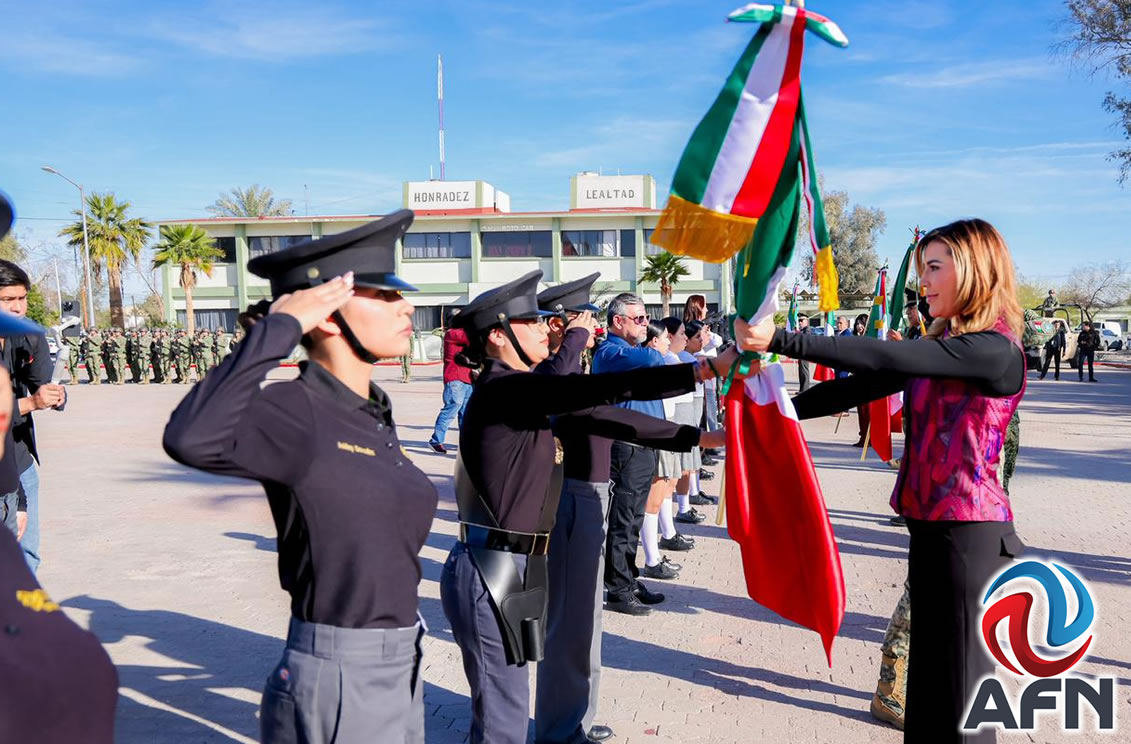 MEXICALI BC 24 DE FEBRERO DE 2026 (AFN).- En la ceremonia por el Día de la Bandera realizada en el cuartel del 23 Regimiento de Caballería Motorizada en Mexicali, la gobernadora Marina del Pilar Ávila Olmeda reconoció el trabajo de las Fuerzas Armadas y envió condolencias a las familias de los militares que murieron recientemente durante un operativo en Jalisco.