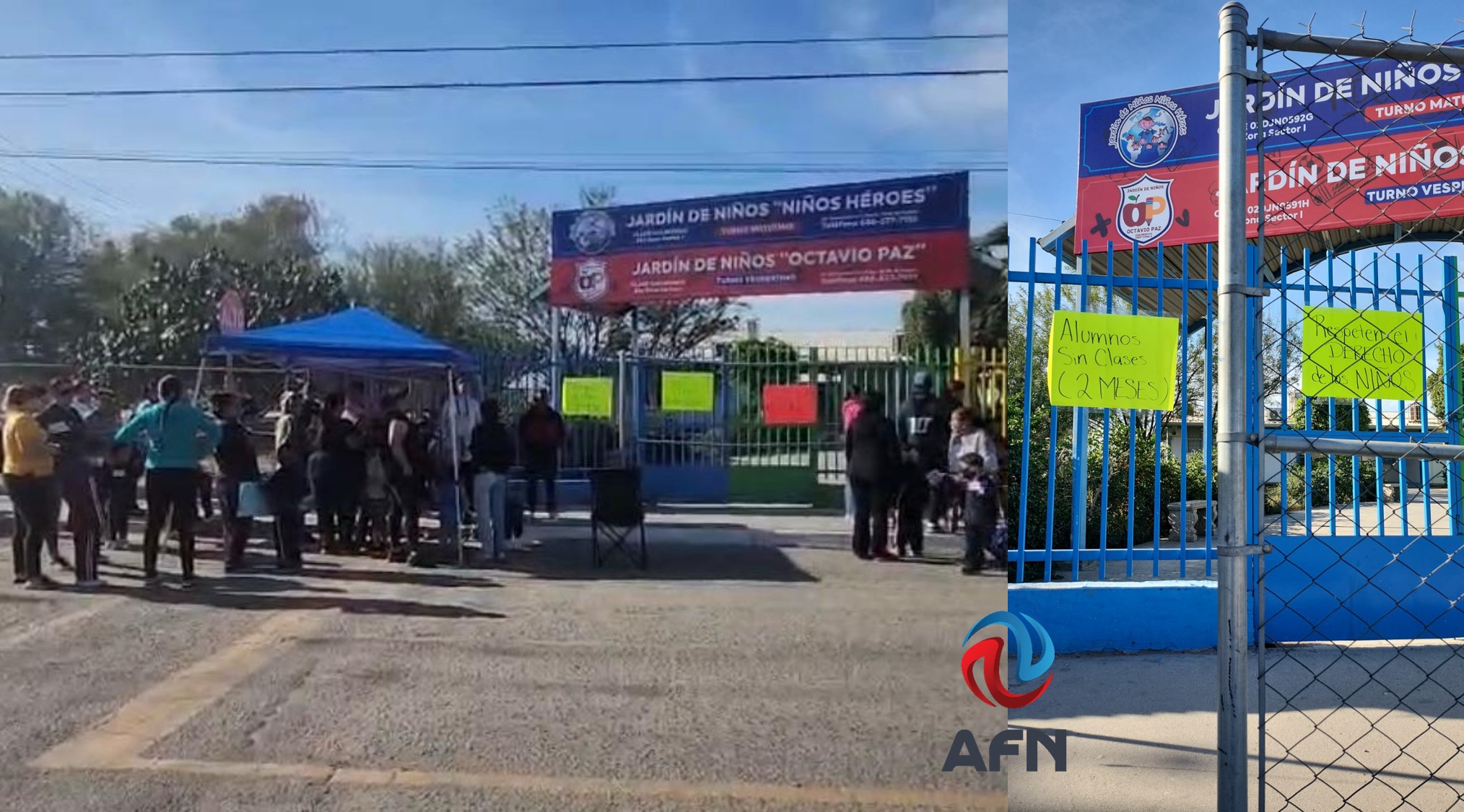 MEXICALI BC 24 DE FEBRERO DE 2026 (AFN).- Madres de familia del preescolar Niños Héroes mantienen tomadas las instalaciones del plantel, en rechazo a la instrucción de la Secretaría de Educación de disolver un grupo y retirar una plaza docente.