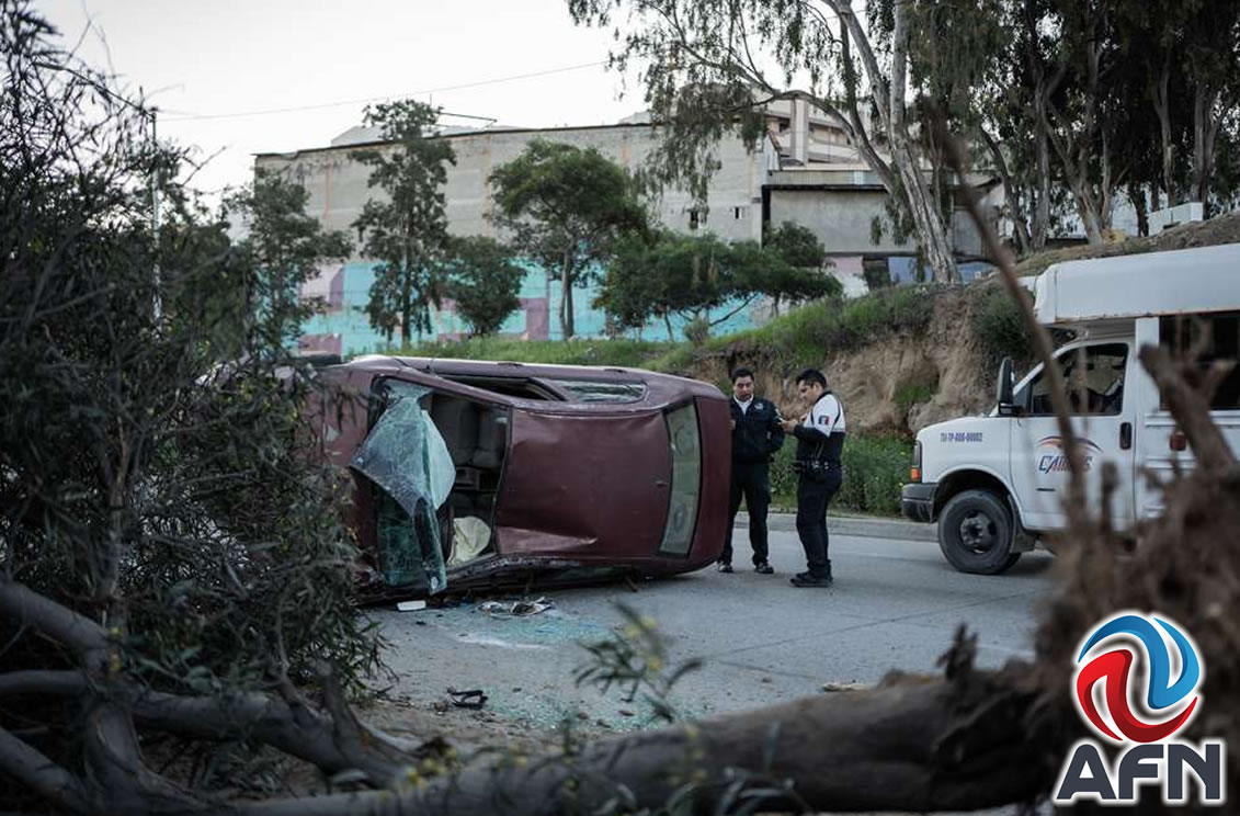 TIJUANA BC 27 DE FEBRERO DE 2026 (AFN).- Una pareja -un hombre y una mujer- resultó lesionada la mañana de este viernes 27 de febrero luego de registrarse una aparatosa volcadura sobre la prolongación de la calle Segunda, a la altura de la colonia Soler, en dirección hacia la Zona Centro.