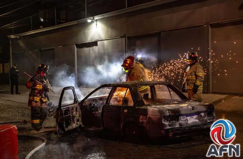 TIJUANA BC 2 DE MARZO DE 2026 (AFN).- Un automóvil fue consumido por el fuego la madrugada de este lunes en la colonia Chula Vista, luego de que presuntamente fuera incendiado y abandonado en plena vía pública, obstruyendo la vialidad.