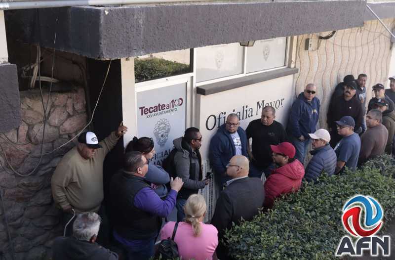 Un contingente compuesto por alrededor de 45 elementos incapacitados de la Dirección de Seguridad Ciudadana y Tránsito Municipal de Tecate acudieron a las oficinas del 25 Ayuntamiento para sostener una reunión con el alcalde Román Cota Muñoz.