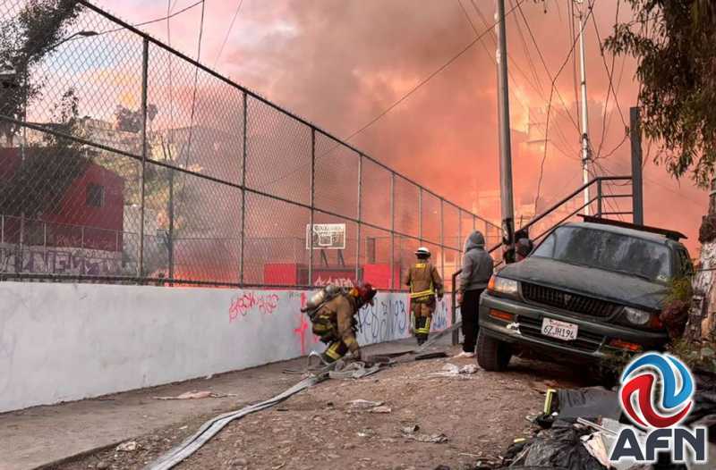 TIJUANA BC 17 DE MARZO DE 2026 (AFN).- Un incendio ocurrido esta mañana en la colonia Leandro Valle, afectó seis viviendas de pequeñas dimensiones ubicadas en una ladera de la zona sobre la avenida Adolfo Ruiz Cortines; no se registraron heridos.