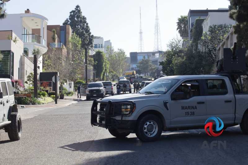 Durante las maniobras, elementos de la Guardia Nacional y de la Secretaría de Marina apoyaron en el resguardo del perímetro, mientras agentes ministeriales cumplían con las diligencias correspondientes para dar cumplimiento a la orden de aprehensión.