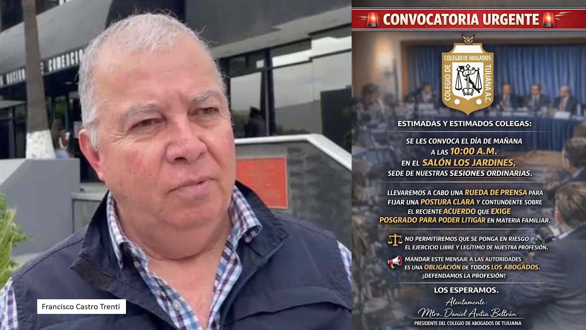 TIJUANA BC 31 DE MARZO DE 2026 (AFN).- El Poder Judicial (PJE) en Baja California está exigiendo a los abogados en la entidad que cuenten con maestría o especialidad en caso de que participen en juicios relacionados con menores, lo cual ha provocado fuerte descontento en el gremio de profesionistas, por tratarse de una medida que se determinó en forma unilateral y que rebasa sus facultades.