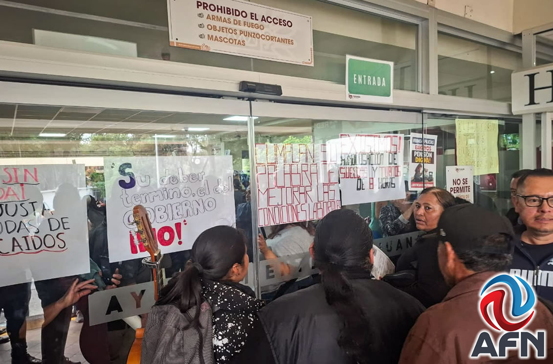 TIJUANA BC 1 DE ABRIL DE 2026 (AFN).- Al menos 50 personas, entre policías de la extinta sección comercial, viudas y agentes retirados, realizaron un plantón en el palacio municipal de Tijuana para exigir avances en diversas demandas relacionadas con seguridad social, pensiones y condiciones laborales.