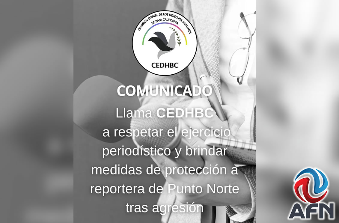 TIJUANA BC 4 DE ABRIL DE 2026 (AFN).- La Comisión Estatal de los Derechos Humanos de Baja California de demandó a la Fiscalía General del Estado (FGE) investigar una agresión contra una reportera del medio Punto Norte, ocurrida la mañana del pasado viernes mientras realizaba su labor informativa.