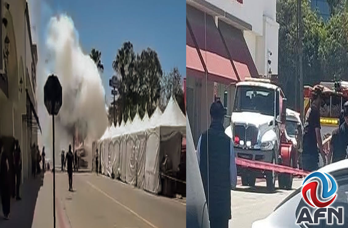 TIJUANA BC 4 DE ABRIL DE 2026 (AFN).- Una fuga que derivó en la explosión de una mina de gas se registró este sábado 4 de abril en un puesto dentro del área donde se desarrollaría el Festival del Taco, ubicado en el estacionamiento de Plaza Río, en Tijuana, sin que se reportaran personas lesionadas.