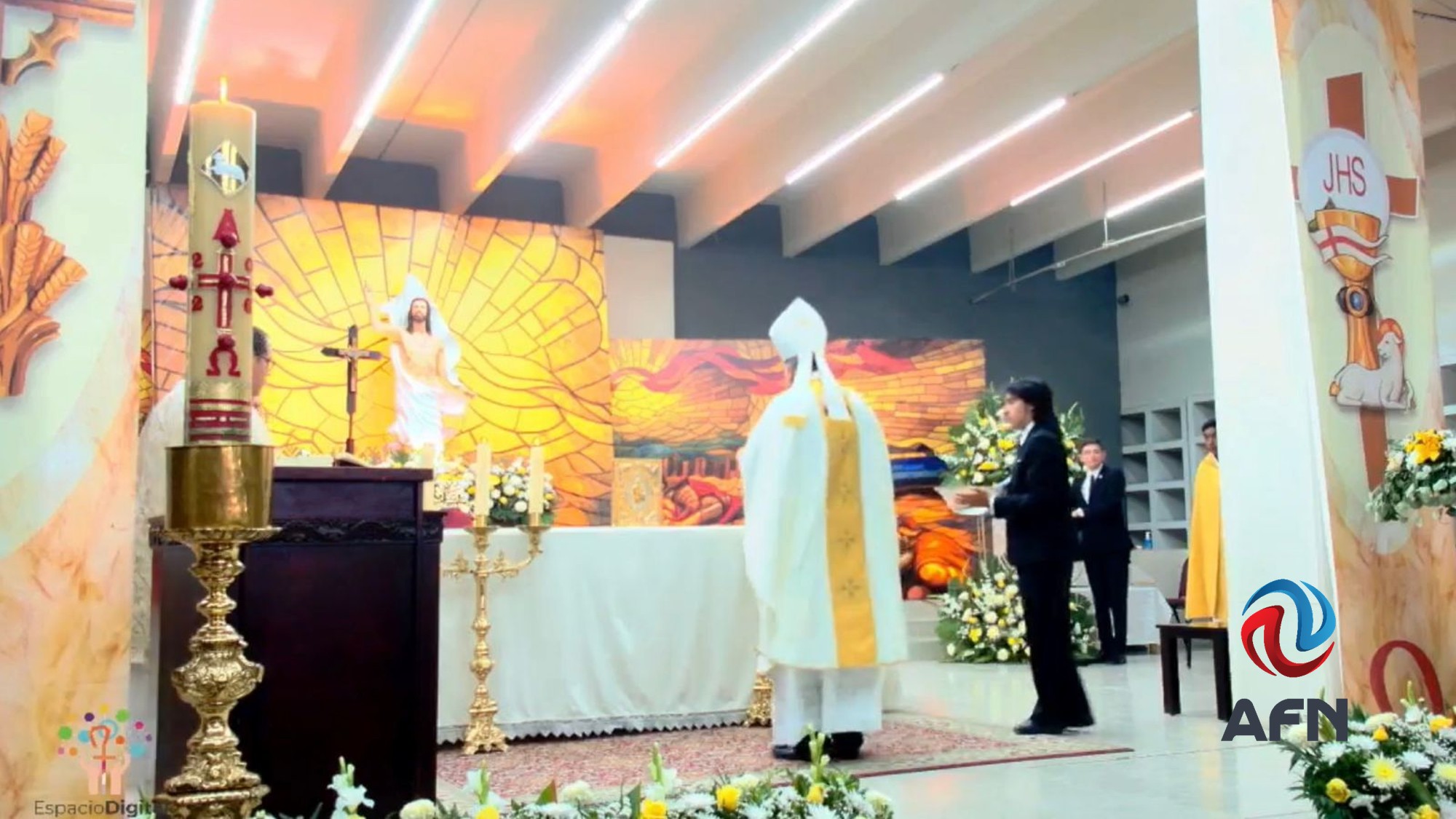 TIJUANA BC 5 DE ABRIL DE 2026 (AFN).- Feligreses católicos celebraron la Pascua de la Resurrección del Señor al acudir a la misa celebrada en la Catedral Metropolitana de Tijuana, ubicada en Zona Río, la cual fue presidida por el administrador apostólico Mario Nicolás Villanueva Arellano.
