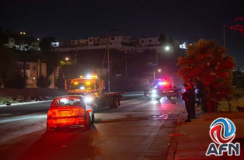 TIJUANA BC 6 DE ABRIL DE 2026 (AFN).- Un accidente vehicular se registró durante la madrugada de este lunes 6 de abril sobre el libramiento Rosas Magallón, a la altura del estadio de los Zonkeys, luego de que un automóvil se impactó contra una palmera; los tripulantes abandonaron la unidad en el sitio.