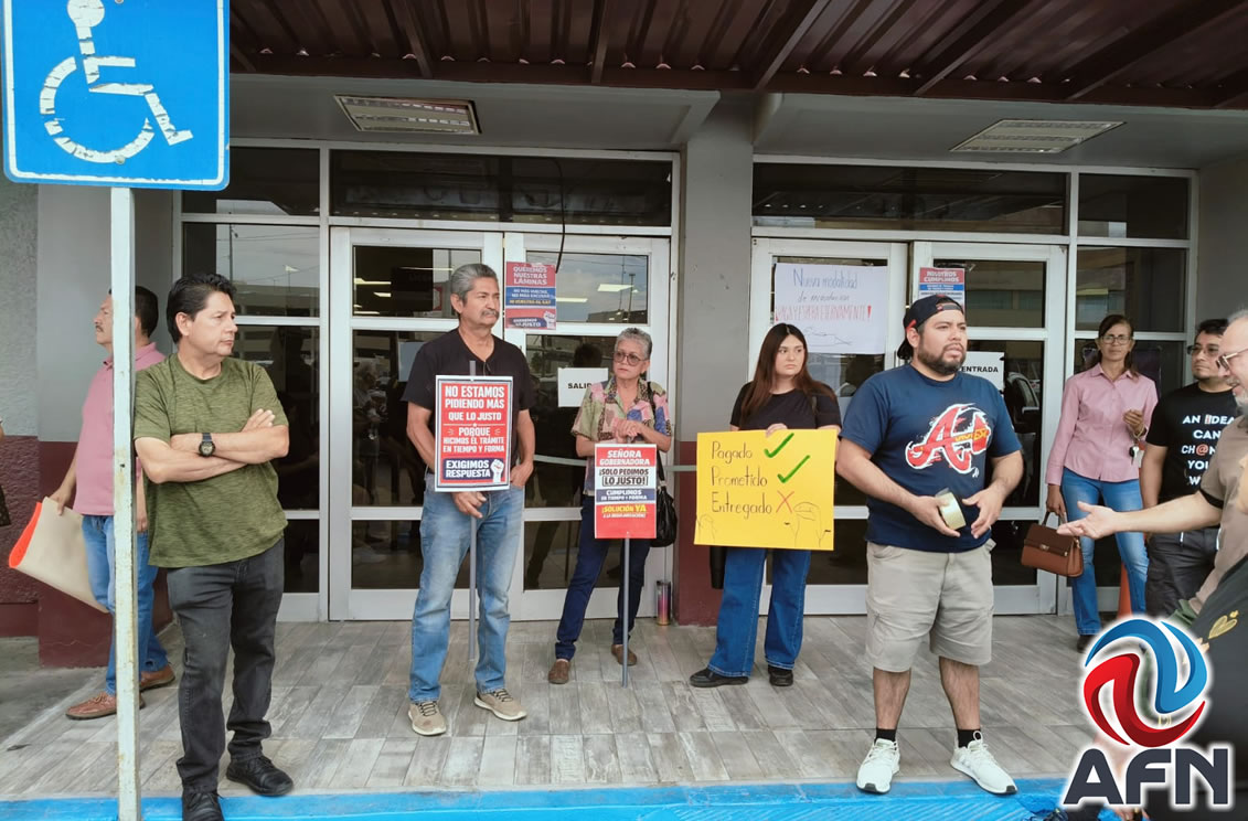 MEXICALI BC 6 DE ABRIL DE 2026 (AFN).- Mexicalenses se manifestaron desde las siete horas de hoy lunes frente a las instalaciones de las oficinas de sub recaudación de rentas, exigiendo la entrega de placas tras haber cumplido con requisitos y pagos, bajo el decreto federal de regularizar autos chocolate, impulsado por la administración anterior y cancelado en enero por el nuevo gobierno.