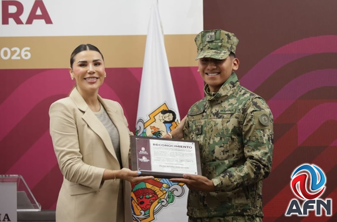 TIJUANA BC 8 DE ABRIL DE 2026 (AFN).- El gobierno de Baja California entregó un reconocimiento al marino Kevin Francisco Pérez Organista, quien el pasado fin de semana ingresó al mar de San Felipe para rescatar a dos mujeres que estaban en riesgo de ahogarse.