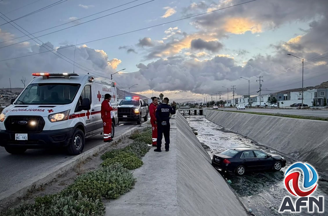 TIJUANA BC 13 DE ABRIL DE 2026 (AFN).- Un conductor terminó en la canalización dentro de un vehículo, tras ser impactado por otra unidad, aunque el responsable del percance escapó; el accidente fue la mañana de este lunes 13 de abril sobre el bulevar Los Olivos Norte, a la altura del fraccionamiento Santa María.