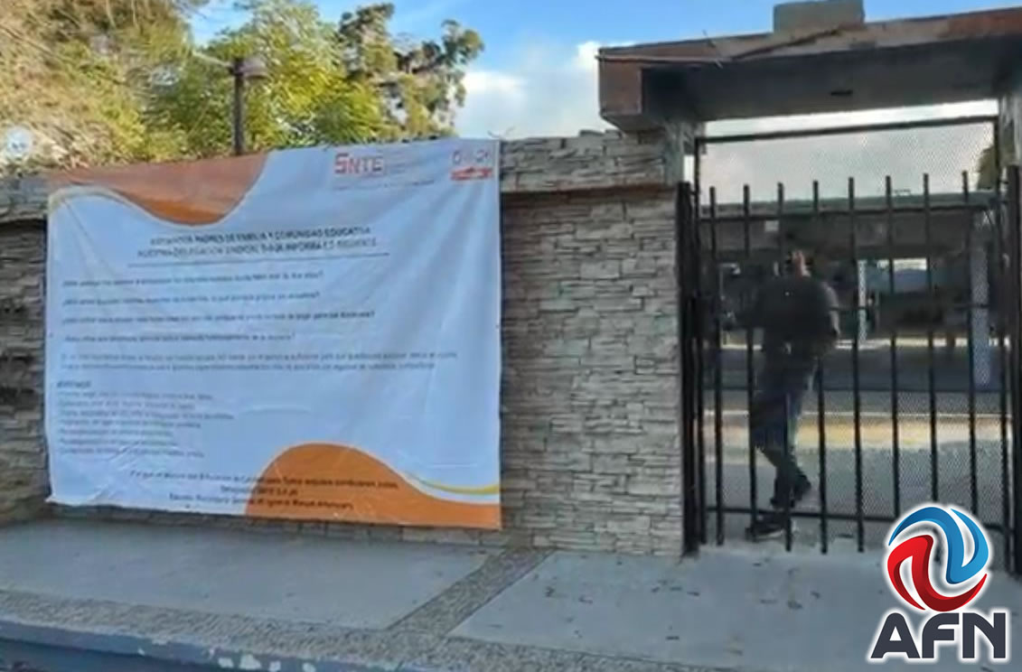 TIJUANA BC 22 DE ABRIL DE 2026 (AFN).- Un grupo de maestros de la Secundaria número 5 Ignacio Manuel Altamirano, ubicada en Playas de Tijuana, suspendió actividades académicas en el plantel, como parte de una protesta en la que exigen sea resuelta una serie de demandas, entre las que se incluye la falta de maestros en su plantilla laboral.