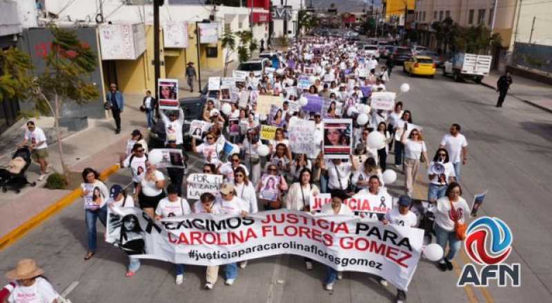 ENSENADA BC 25 DE ABRIL DE 2026 (AFN).- Con consignas, pancartas y un sentimiento de indignación, más de mil personas se congregaron este sábado en el Centro Estatal de las Artes (Ceart) de Ensenada para participar en una marcha en exigencia de justicia por el asesinato de Carolina Flores, ex reina de belleza originaria del municipio; quien fue asesinada por su suegra en su departamento en la Ciudad de México.
