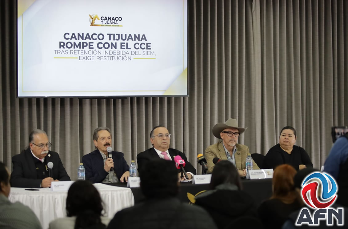 TIJUANA BC 27 DE ABRIL DE 2026 (AFN).- El presidente de la Cámara Nacional de Comercio (Canaco) de Tijuana, Olivaldo Paz Gómez, informó que la ruptura con el Consejo Coordinador Empresarial (CCE) no fue una decisión unilateral, luego de presuntas irregularidades en el manejo de recursos del Sistema de Información Empresarial Mexicano (SIEM).