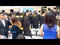 Solamente fue un grupo, dijo un padre molesto, que se presentó al acto sin toga y con uniforme, por lo que los organizadores los pusieron en las filas principales para que resaltaran entre los que sí llevaban su toga.
