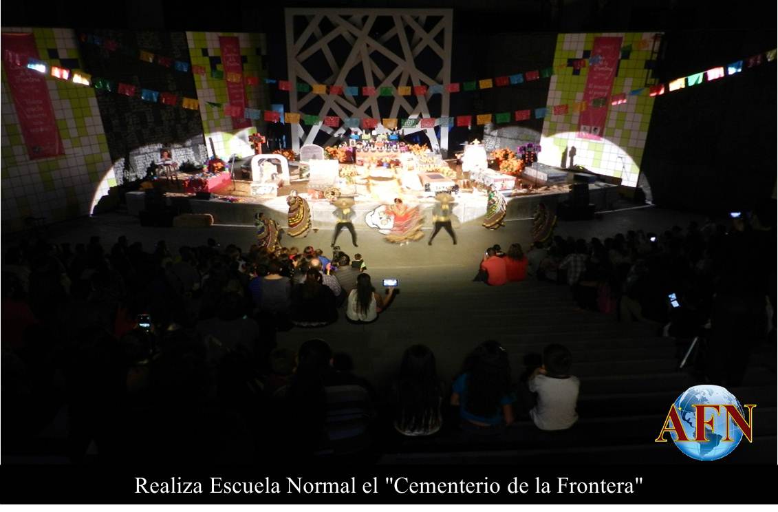 TIJUANA BC 1 DE NOVIEMBRE DE 2015 (AFN).- Mezclando la danza con el teatro, la Escuela Normal Fronteriza realizó la obra “El Cementerio de la Frontera” en las instalaciones del Anfiteatro del Instituto de la Cultura de Baja California (ICBC), contando con una asistencia de más de 500 personas.