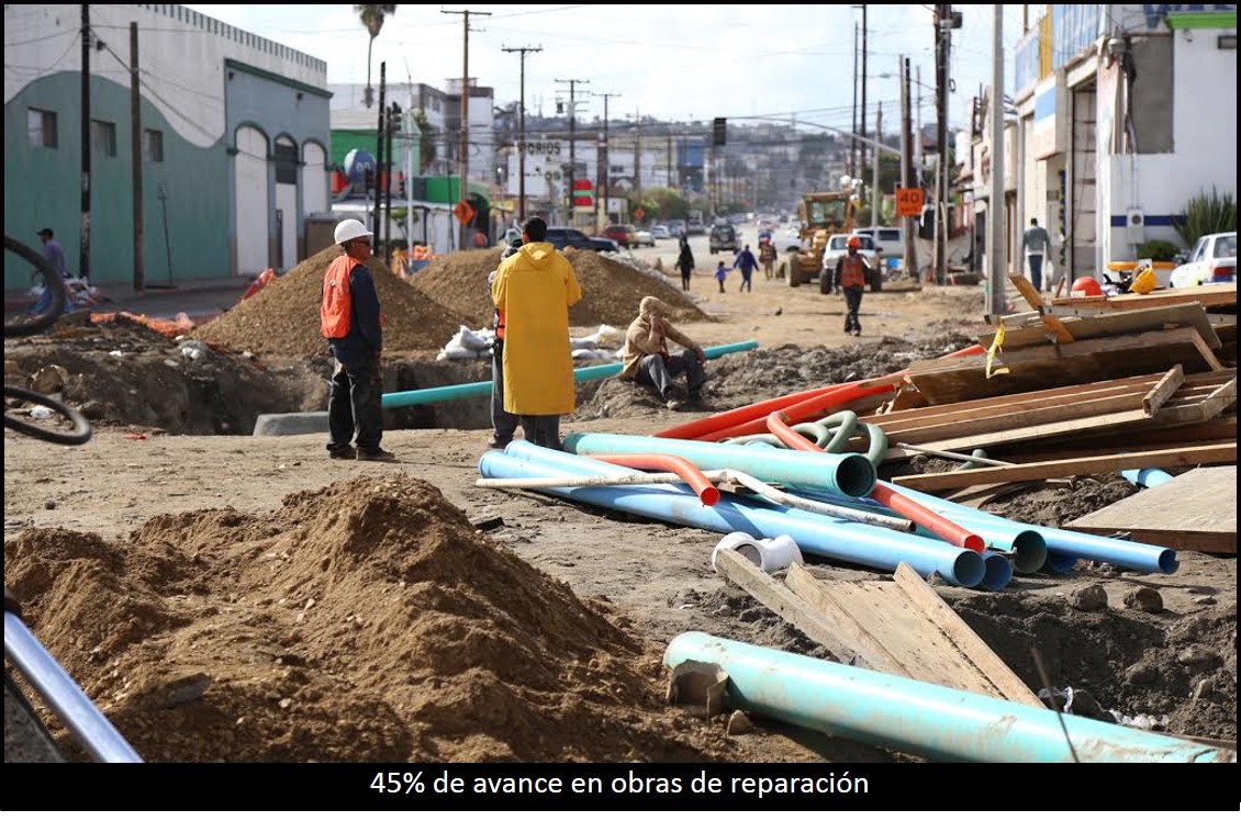TIJUANA BC 4 DE NOVIEMBRE DE 2015 (AFN).- Un cuarenta y cinco por ciento de avance, presentan los trabajos de reparación en las calles 9 y 10 de la avenida Quintana Roo al bulevar Sánchez Taboada, así como de Madero a Negrete, informó la Secretaría de Desarrollo Urbano y Ecología.
