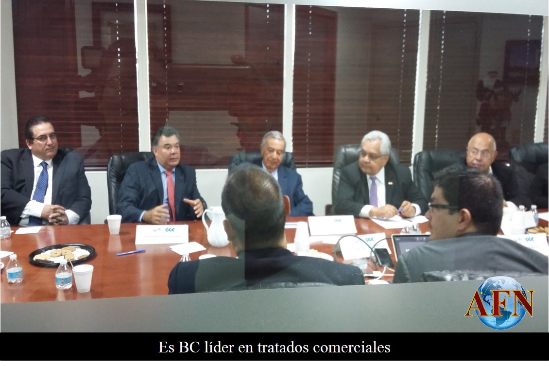TIJUANA BC 5 DE NOVIEMBRE DE 2015 (AFN).- Actualmente, el Estado de Baja California se encuentra posicionado como el número uno en lo que respecta a tratados comerciales, pues cuenta con 46 países que invierten en la entidad con apoyo de la Alianza del Pacífico y el Tratado de Libre Comercio de América del Norte (Tlcan), señaló el presidente del Consejo Empresarial Mexicano de Comercio Exterior, Inversión y Tecnología (Comce), Valentín Diez Morodo.