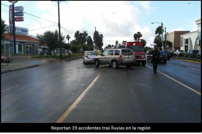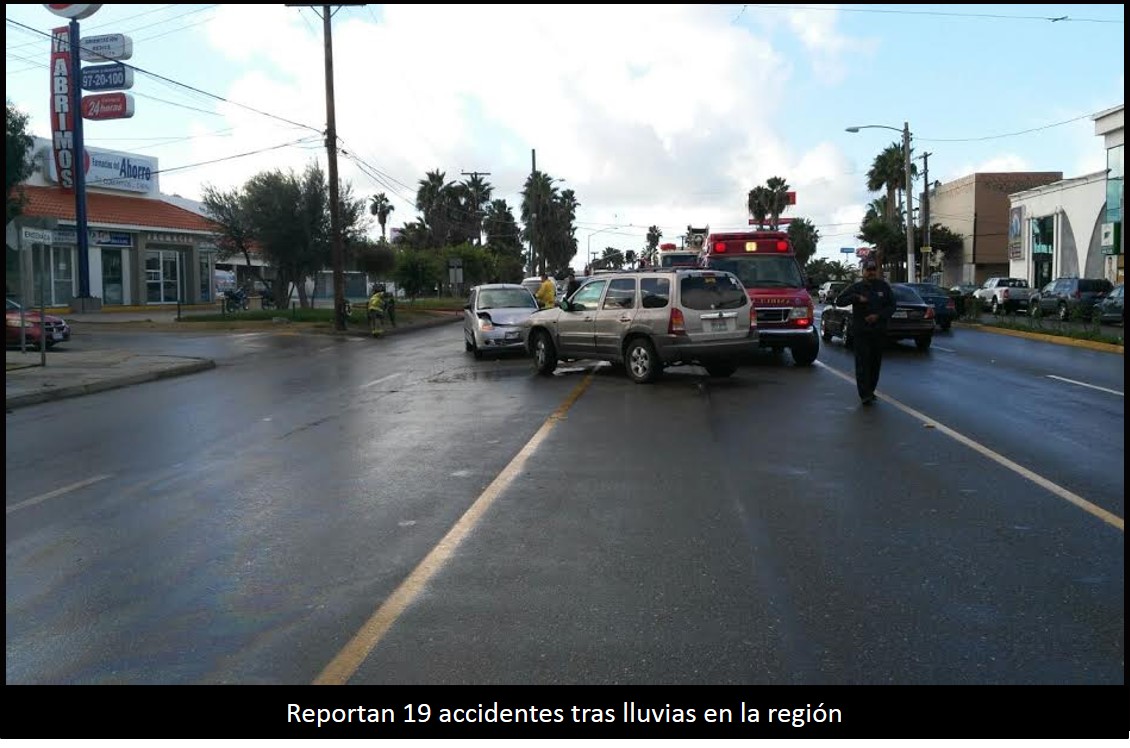 TIJUANA BC 10 DE NOVIEMBRE DE 2015 (AFN).- Un total de 19 accidentes de tránsito fueron registrados por la Secretaría de Seguridad Pública Municipal (SSPM) tras las lluvias de este martes; los incidentes en su mayoría fueron por no conservar distancia.