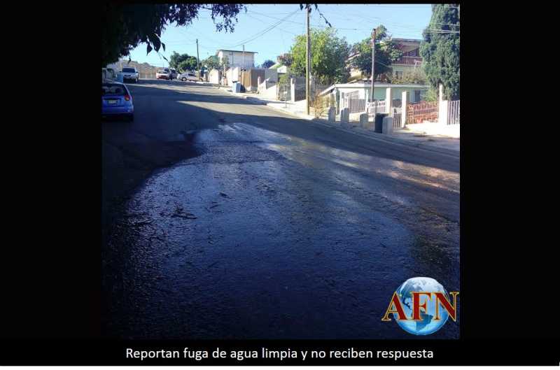 TIJUANA BC 17 DE NOVIEMBRE DE 2015 (AFN).- Vecinos del fraccionamiento Mirador, La Mesa, también conocido como Montebello, reportaron desde muy temprano una fuga de agua limpia a la CESPT, en la calle Sor Juana Inés de la Cruz, entre Constelación y Ensenada, sin tener todavía respuesta.