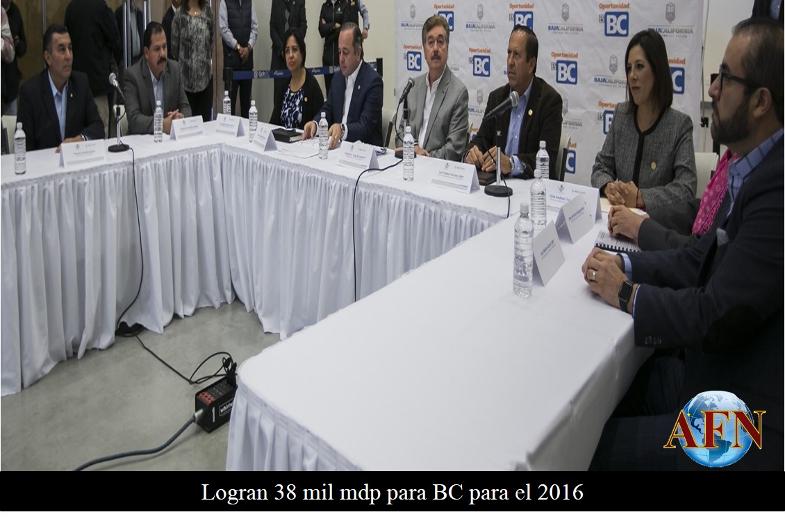 MEXICALI BC 17 DE NOVIEMBRE DE 2015 (AFN).- El gobernador Francisco Vega de Lamadrid anunció este martes, acompañado de diputados federales por Baja California, que los recursos a ejercer en la entidad, correspondientes al Presupuesto de Egresos de la Federación (PEF) 2016, serán de un total de 38 mil 105 millones 913 mil 883 pesos, lo que representa un aumento del 3% en comparación con el 2015.