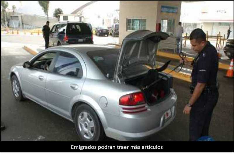 Es necesario, advirtió, que al ingresar al país se acredite la nacionalidad así como la procedencia del vehículo. En cuanto a los artículos que pueden ingresar sin el pago de impuestos son aquellos que forman parte del equipaje personal, como pueden ser dos cámaras fotográficas o de videograbación, libros, revistas, dos equipos deportivos personales y hasta 3 mascotas o animales de compañía, así mismo invitó a consultar en la página.