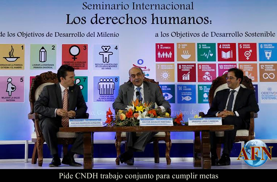 Dávalos Martínez señaló que, una vez conocido el alcance de los objetivos de desarrollo sostenible, la CNDH refrendó públicamente el compromiso que hizo en la Conferencia de Instituciones Nacionales de Derechos Humanos en Mérida, Yucatán, de trabajar en los próximos 15 años para lograr los 17 objetivos y 169 metas.