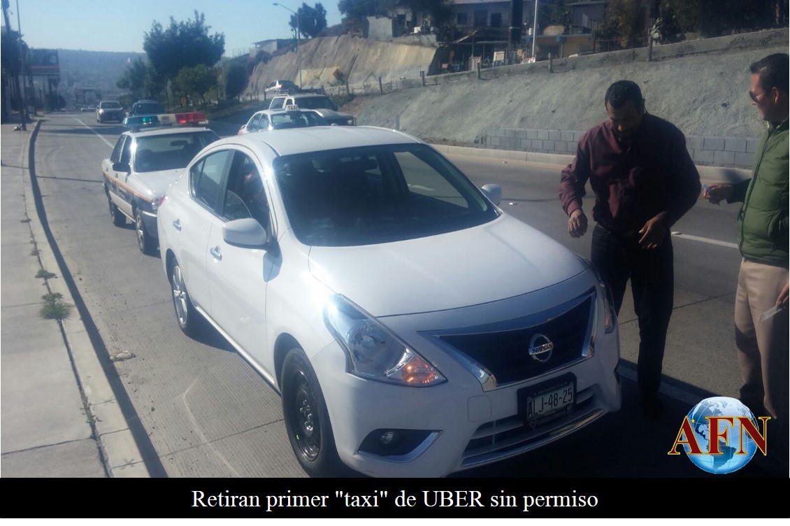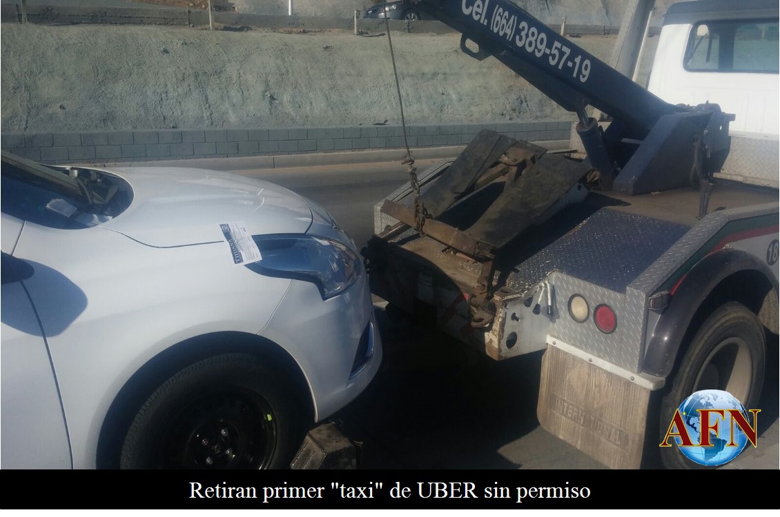 TIJUANA BC 1 DE DICIEMBRE DE 2015 (AFN).- Por no contar con la documentación necesaria para brindar servicio de transporte de personas, personal de la Dirección Municipal de Vialidad y Transporte de Tijuana remolcó la primera unidad de la empresa UBER, la cual se encarga de realizar servicio privado de transporte.