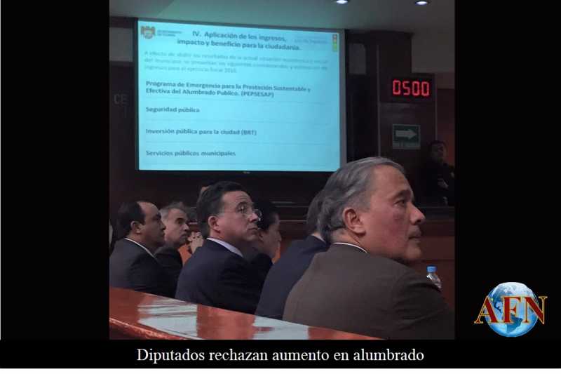 MEXICALI BC 1 DE DICIEMBRE DE 2015 (AFN).- Diputados del Congreso del Estado le negaron a la administración priísta de Tijuana, el incremento que pretendía hacer en la tarifa del impuesto al alumbrado público; a cambio, otorgaron al alcalde Jorge Astiazarán Orcí un plazo para presentar un plan alternativo para obtener los recursos que requiere para resolver el problema de las luminarias.