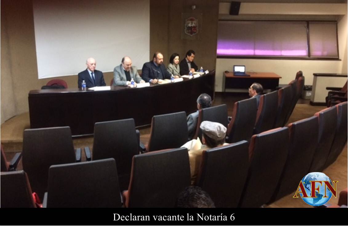 MEXICALI BC 1 DE DICIEMBRE DE 2015 (AFN).- El sínodo integrado por dos magistrados del Tribunal Superior de Justicia del Estado (TSJE), dos miembros del Colegio de Notarios y un representante del Poder Ejecutivo, determinaron anoche declarar desierta la vacante correspondiente a la titularidad de la Notaría 6 de Mexicali.
