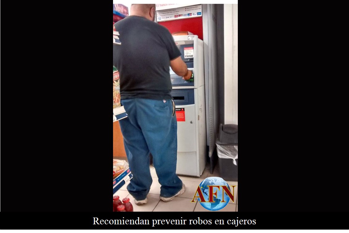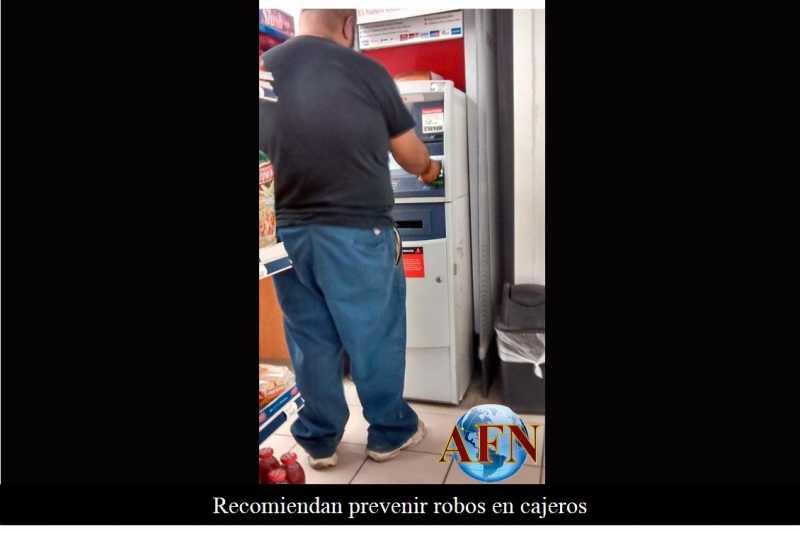 Una de las principales recomendaciones que se hacen, expuso, es no recibir ayuda de ningún desconocido al momento de retirar efectivo, pues le pueden cambiar la tarjeta, robar su clave o clonarla; también es importante no acudir a cajeros en horarios nocturnos, o de lo contrario ir en compañía de un conocido, sobre todo en lugares con poca iluminación o desolados.