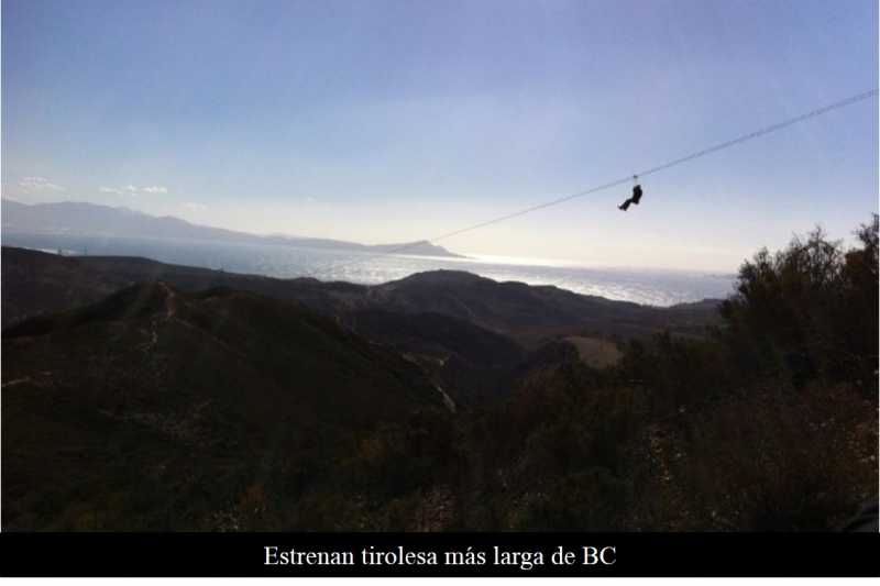 ENSENADA BC 13 DE NOVIEMBRE DE 2015 (El Vigía).- Para continuar con el impulso del turismo de aventura, además de cumplir con una de las peticiones de las empresas navieras de generar productos turísticos seguros y de calidad, fue inaugurada ayer la primera etapa de la tirolesa ubicada en el parque "Desert Nest” de Cuatro Cuatros.