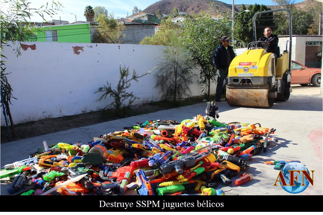 TIJUANA BC 16 DE DICIEMBRE DE 2015 (AFN).- La Secretaría de Seguridad Pública Municipal (SSPM) destruyó juguetes bélicos entregados por alumnos de nivel primaria, a fin de fomentar la cultura de paz en los menores; a cambio se les entregó un juguete didáctico.