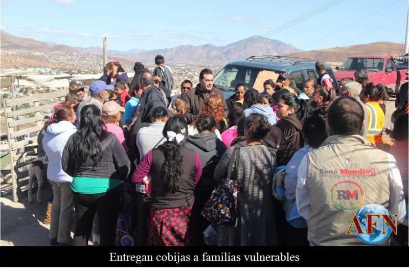 TIJUANA BC 3 DE ENERO DE 2016 (AFN).- Cobijas, lonas, cobertores y calentones, fueron algunos de los artículos que entregó el diputado local René Mendívil Acosta junto con su equipo de trabajo, con la finalidad de aminorar el frío “extremo” que se ha registrado en las últimas semanas en la región.