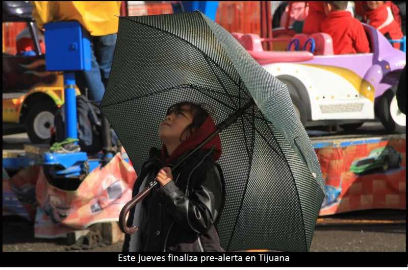 TIJUANA BC 7 DE ENERO DE 2016 (AFN).- Debido a que las lluvias disminuirán gradualmente durante el día de hoy hasta la mañana del viernes, la Dirección de Protección Civil determinó finalizar el estado de “Pre-Alerta” a las 00:00 horas (12:00 am), sin embargo si cambian los pronósticos meteorológicos, podría restablecerse dicho Estado.