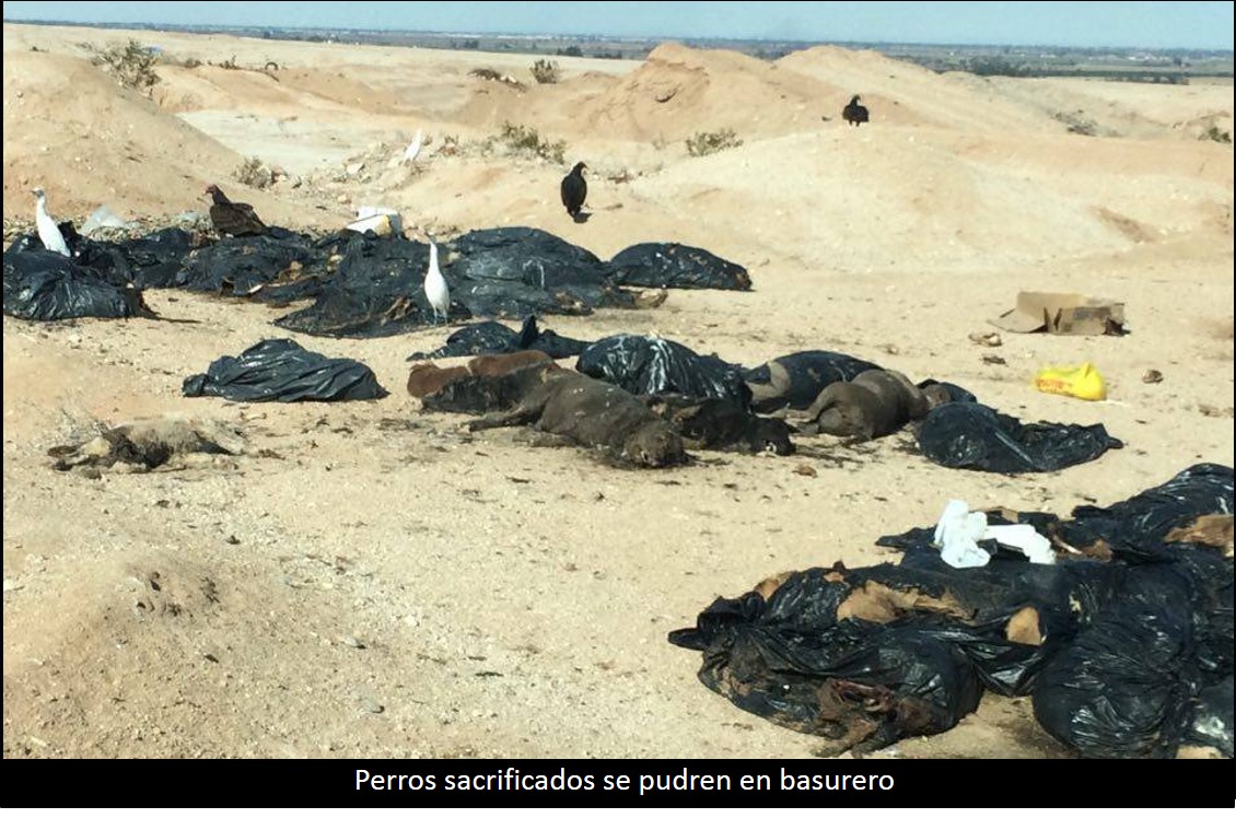 MEXICALI BC 11 DE ENERO DE 2016 (Periodismo Negro).- El XXI Ayuntamiento de Mexicali arrojó cientos de perros al aire libre en el basurero “Hipólito Rentería” lo cual es una amenaza a la salud pública y una violación a la Ley de Protección Animal de Baja California que obliga enterrar a los animales muertos o incinerarlos en hornos.