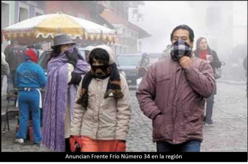 MEXICALI BC 29 DE ENERO DE 2016 (AFN).-El Servicio Meteorológico Nacional (SMN) y la Comisión Nacional del Agua (Conagua), informan que se prevén temperaturas de frías a muy frías en gran parte de México, debido al frente Frío Número 34, el cual se extiende sobre el occidente del Mar Caribe.