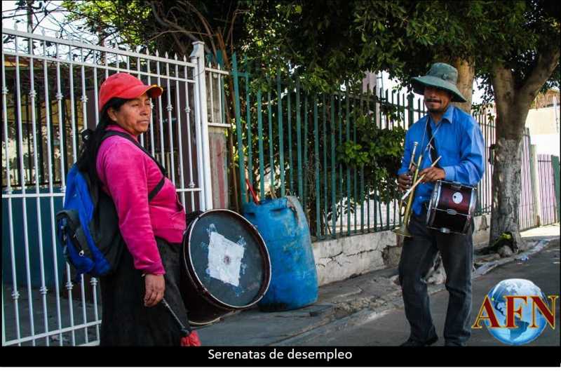 TIJUANA BC A 5 DE ENERO DE 2016 (AFN).- Dos músicos ambulantes, armados con tambores y corneta, pasan su día entonando música a domicilio a cambio de monedas.