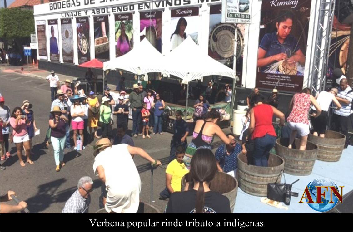 ENSENADA BC 21 DE AGOSTO DE 2016 (AFN).- Con el tradicional pisado de uva en el que participaron niños y adultos, además de dedicar una fachada al trabajo y aportaciones de indígenas destacados, fue realizada ayer la edición 26 de la Verbena Popular en Valle de Guadalupe