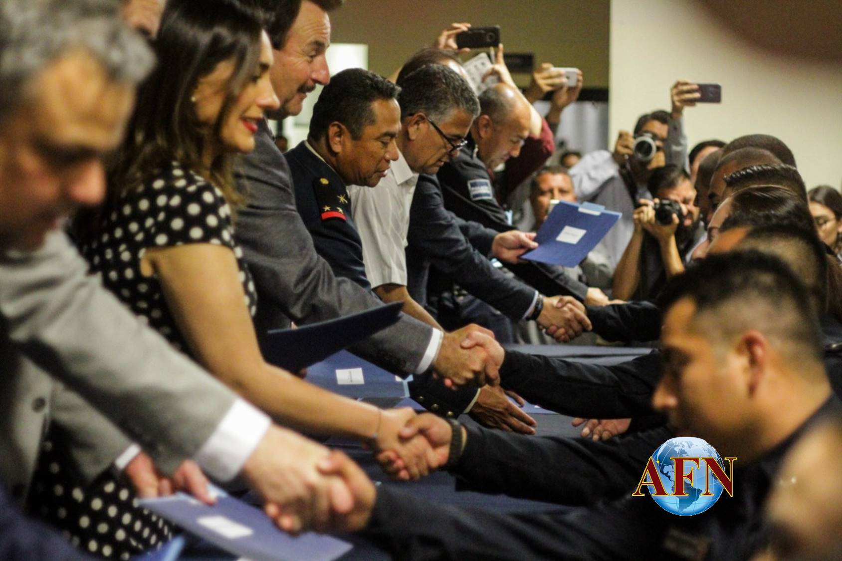 TIJUANA BC 4 DE SEPTIEMBRE DE 2018 (AFN).- Autoridades municipales y estatales atestiguaron hoy una ceremonia de graduación de 25 hombres y cuatro mujeres, quienes se integrarán a las filas de la Policía Municipal, de la Secretaría de Seguridad Pública Municipal (SSPM); con ellos se han sumado un total de 252 elementos en lo que va de la administración y se espera que al finalizar el periodo del actual ayuntamiento terminé con alrededor de 500 policías integrados a la corporación.