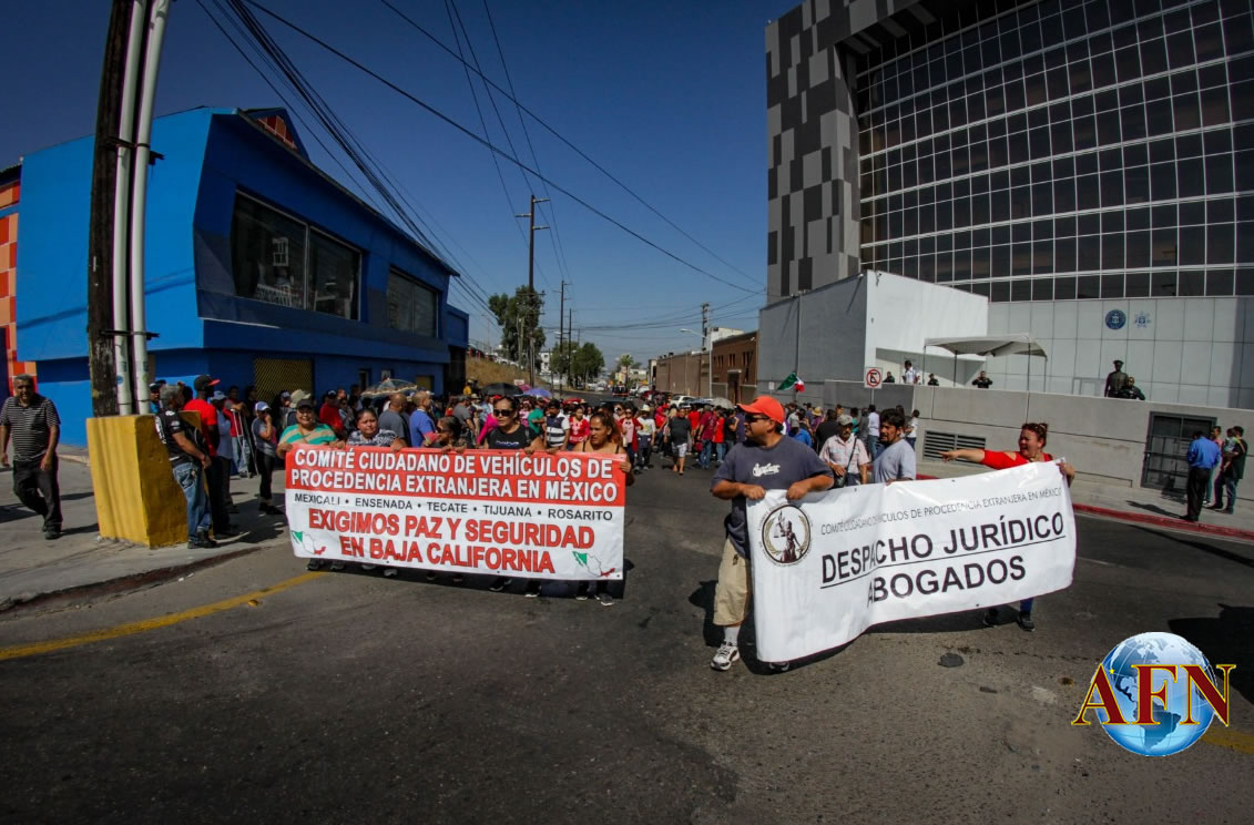 TIJUANA BC 10 DE SEPTIEMBRE DE 2018 (AFN).- Como lo acordaron en una reunión realizada el sábado, un numeroso grupo de propietarios de vehículos irregulares o "chocolates" se manifestaron pasadas las 10:00 horas de este lunes frente al edificio de la Secretaría de Seguridad Pública Municipal (SSPM) en la Zona del Río.