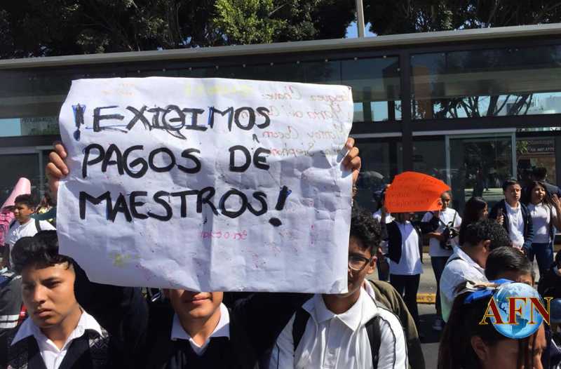 TIJUANA BC 12 DE SEPTIEMBRE DE 2018 (AFN).- Más de mil jóvenes estudiantes de secundaria y preparatoria del autodenominado "movimiento antorchista", se manifestaron esta mañana en las instalaciones del Centro de Gobierno de Baja California en Tijuana; pidieron pago a docentes y mayor infraestructura en escuelas en comunidades de la Zona Este.
