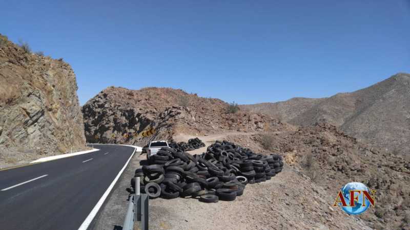 TECATE BC 14 DE SEPTIEMBRE DE 2018 (AFN).- El gobierno estatal, a través del Fideicomiso Autopista Centinela-La Rumorosa (Fiarum) retiró 4 mil llantas, las cuales de manera clandestina fueron arrojadas a los acantilados de dos de los descansos del cuerpo descendente ubicados en los kilómetros 45 y 51.